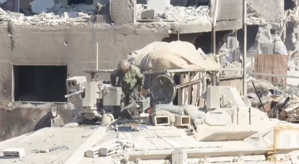 كما دمر مقاتلو القسام ناقلة جند من طراز النمر وجرافة من على مسافة قريبة جدا.