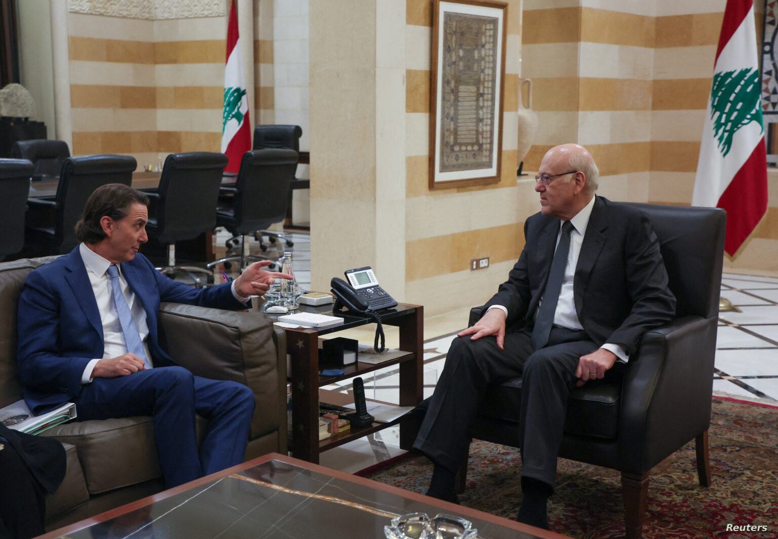 وأُفيد بان بري كان شديد الوضوح مع هوكشتين بالاشارة الى ان القرار 1701 واضح ولا يحتاج الى اي تعديل، وان هناك توافقاً لبنانياً على تنفيذه، وان اي محاولة لتعديله ستقضي على فرصة تنفيذه، وان على الولايات المتحدة البحث في سبل وقف الخروقات الاسرائيلية للقرار وليس في الحديث عن اجراءات احادية في الجانب اللبناني. فيما نقل عن رئيس الحكومة قوله للموفد الاميركي بأن ما يعرضه لن يقبله احد في لبنان. وسمع هوكشتين عبارات غير واضحة عن ان حزب الله لا يجد ان اسرائيل في وضع يمكنها من فرض الشروط التي يحملها.