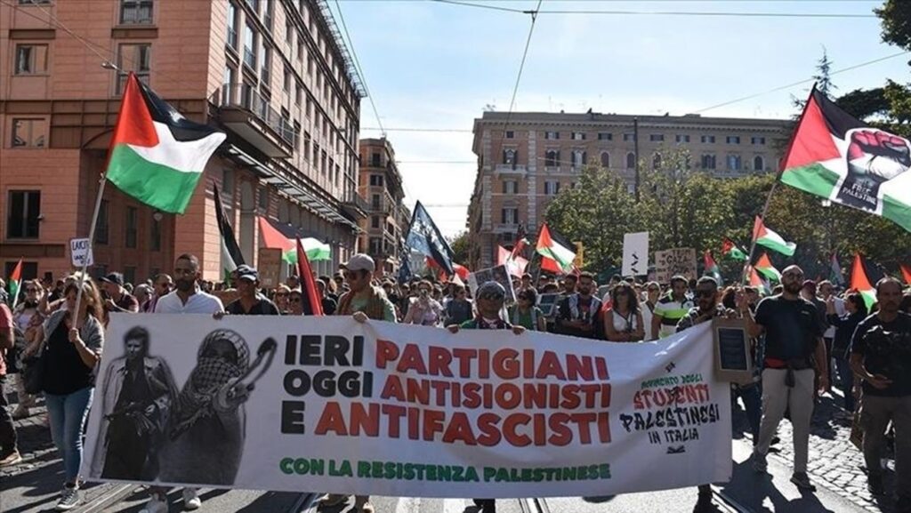 وندد الطلاب، الأربعاء، بتواطؤ مجموعة الصناعات الدفاعية الإيطالية في العدوان الإسرائيلي الوحشي على قطاع غزة، ورددوا هتافات مناهضة للاحتلال الإسرائيلي.