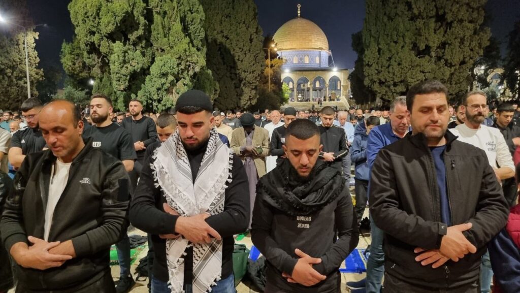 وقدّرت دائرة الأوقاف الإسلامية في القدس أن “نحو 90 ألف مصل أدوا صلاتي العشاء والتراويح في رحاب المسجد الأقصى”، غالبيتهم من أبناء المدينة المقدسة أو من داخل أراضي عام 1948، حيث تحرم سلطات الاحتلال آلاف المواطنين من محافظات الضفة الغربية من الوصول إلى القدس لأداء الصلاة في المسجد الأقصى.