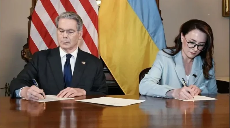 وقال وزير الخزانة الأميركي سكوت بيسنت، في رسالة عبر الفيديو: “يسعدني أن أعلن اليوم توقيع اتفاقية الشراكة الاقتصادية التاريخية مع أوكرانيا”.