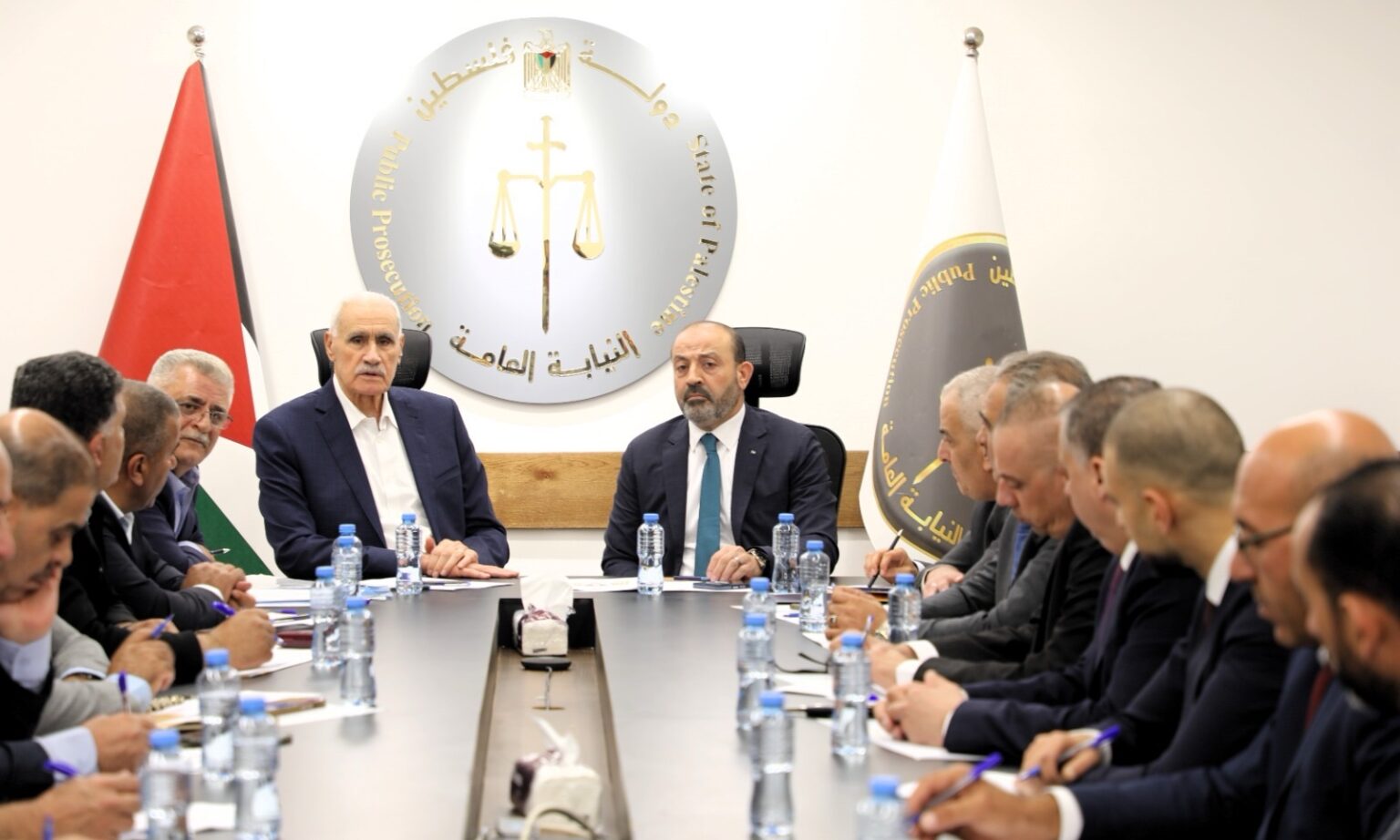 رام الله/ مكتب النائب العام: عقد النائب العام المستشار أكرم الخطيب، وبحضور مستشار السيد الرئيس لشؤون المحافظين مساعد القائد الاعلى لقوى الامن الفريق الحاج إسماعيل جبر ، ومنسق شؤون المحافظات المحافظ موفق دراغمة اليوم الاثنين في مدينة رام الله، اجتماعاً تنسيقياً موسعاً مع مجلس المحافظين ورؤساء النيابات الجزئية في مختلف المحافظات.