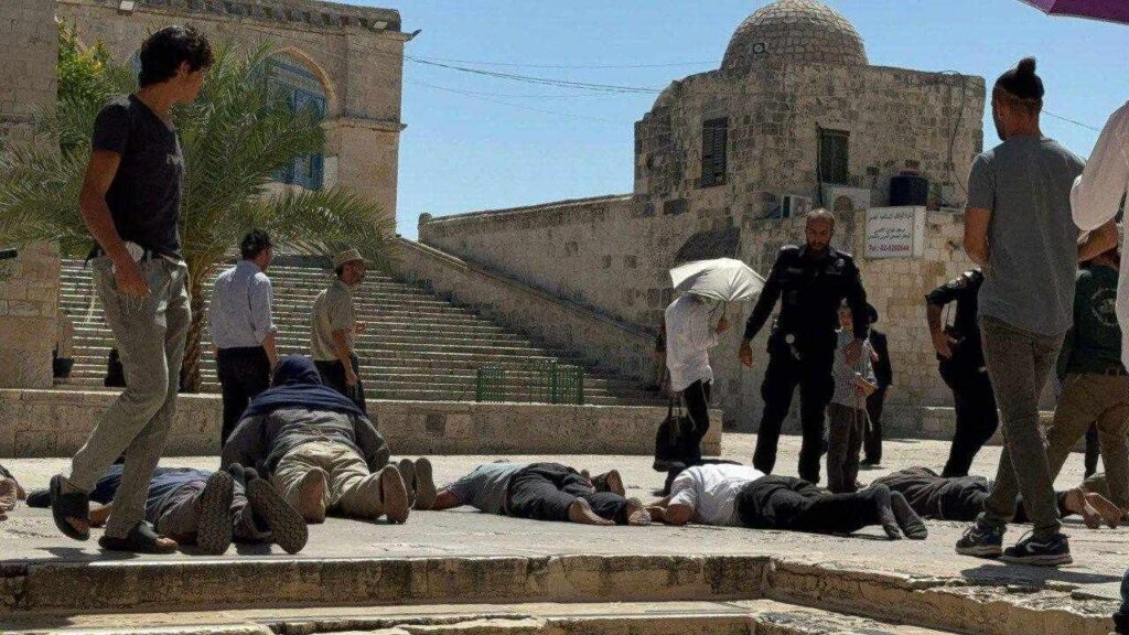 كما تقوم مجموعات من المستوطنين بجولات على أبواب الأقصى من الجهة الخارجية، والصلاة عليها.
