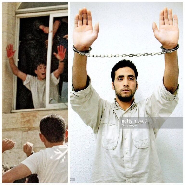 وكانت الصورة الشهيرة، لعبد العزيز صالحة يرفع يديه ملطختين بالدماء. شاهدها مرارًا في الصحافة وعلى التلفاز، وبعد عدة محاولات، اعتقل الاحتلال صالحة على حاجز “طيار” بين سردا ورام الله.