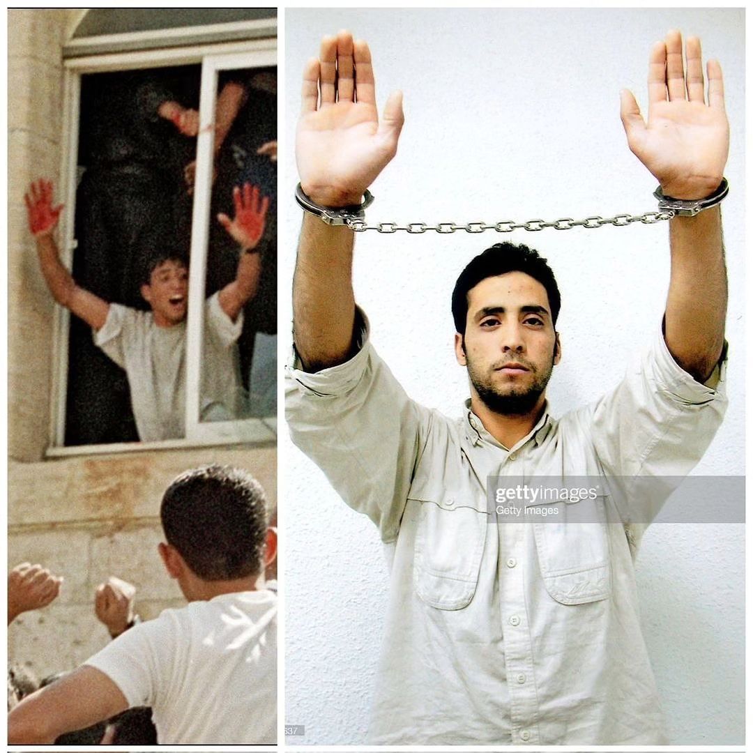 صورة صالحة الأشهر عندما ظهر يلوح بيده الملطختين بالدماء بعد مشاركته في عملية قتل الجنديين فاديم نورجيتش ويوسي أفراهامي قتل الجنديين في رام الله عام 2000.