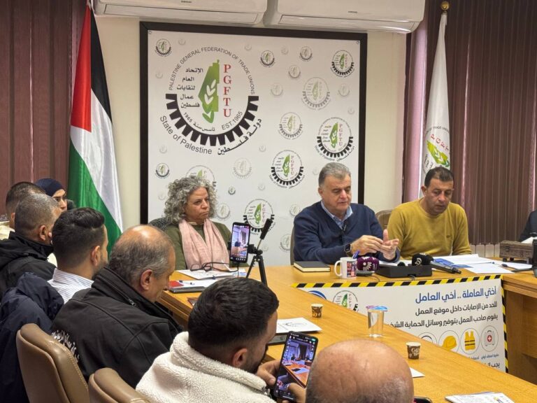 وحصل الاتحاد العام لنقابات عمال فلسطين على مبلغ 2.5 مليون دولار من منظمة العمل الدولية لتأمين إعالة عمال غزة في الضفة، الذين وفر لهم مع المبيت والطعام 7 دفعات، كمساعدات بقيمة 700 شيقل.