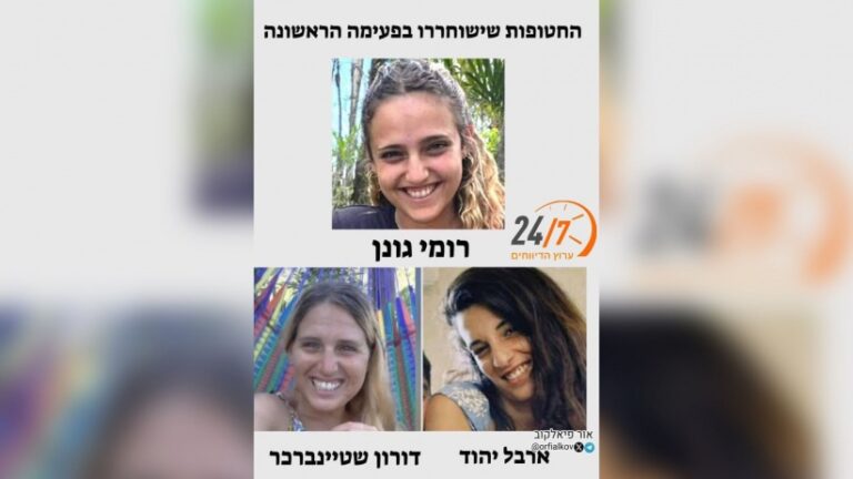 شاركها فيسبوك واتساب تيلقرام تويتر البريد الإلكتروني Copy Link أعلن الناطق باسم كتائب القسام أبو عبيدة في إطار صفقة طوفان الأقصى لتبادل الأسرى، الإفراج اليوم الأحد عن الأسرى المحتجزات التالية أسماؤهن:1- رومي جونين (24 عاماً)2-إميلي دماري (28 عاماً)3-دورون شطنبر خير (31 عاماً)