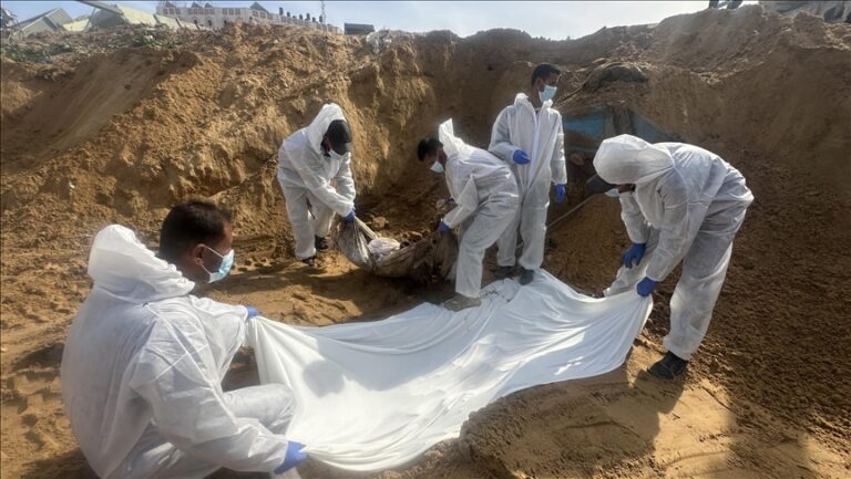 وأضاف أن هذه الجثث لمجموعة فلسطينيين “قام الجيش الإسرائيلي بإعدامهم ودفنهم هنا”، خلال أشهر الإبادة.