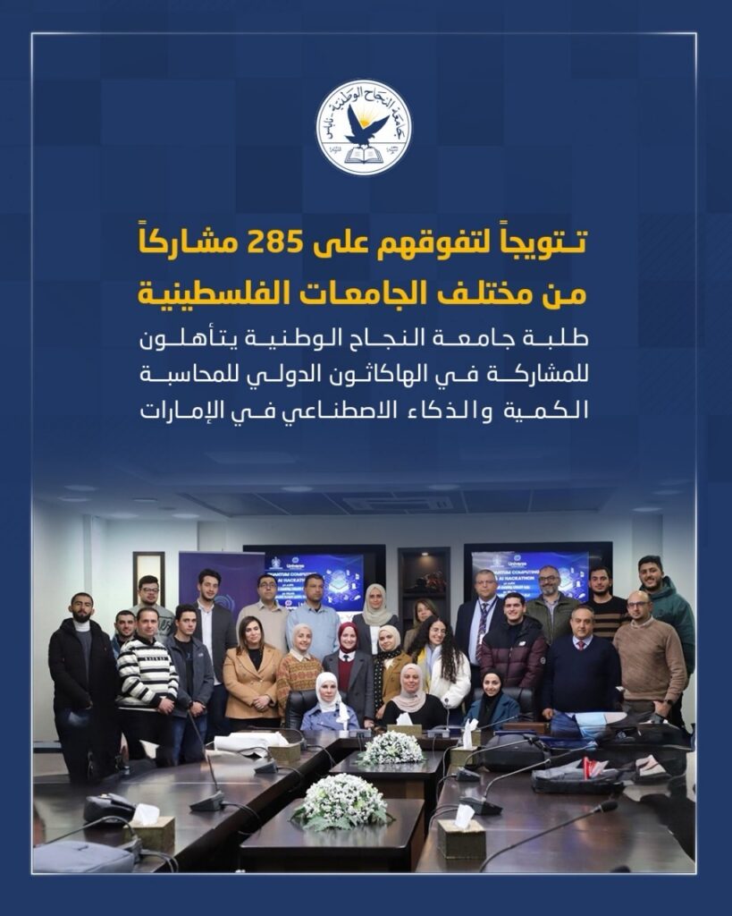 ويُبرز هذا الإنجاز دور جامعة النجاح الوطنية في توفير بيئة تعليمية تشجع على الابتكار والتفوق، مما يسهم في تمكين طلبتها من التميز والمشاركة الفاعلة في المسابقات المحلية والدولية.