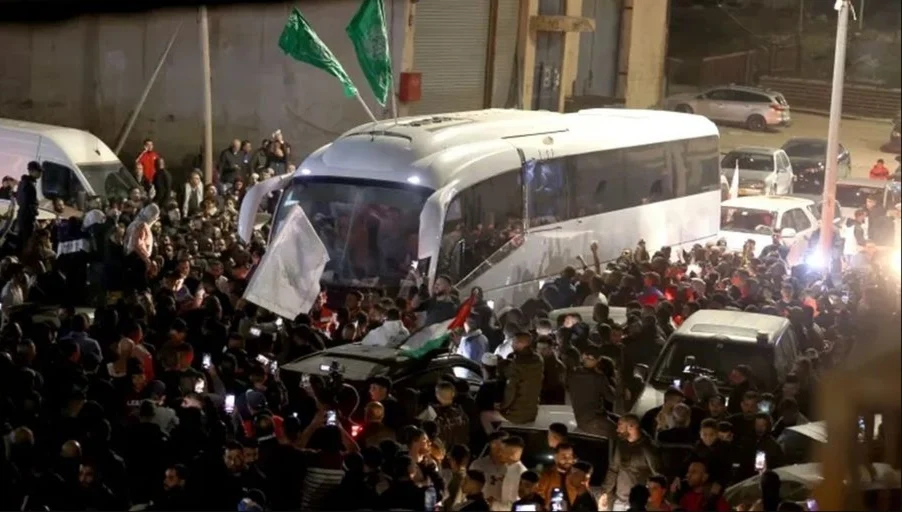 وليل أمس الأربعاء، وصلت الدفعة السابعة من الأسرى الفلسطينيين المحرّرين، إلى مدينة رام الله، في إثر عملية تبادل للأسرى بين المقاومة الفلسطينية وحكومة الاحتلال في مرحلتها الأولى من اتفاق وقف إطلاق النار.