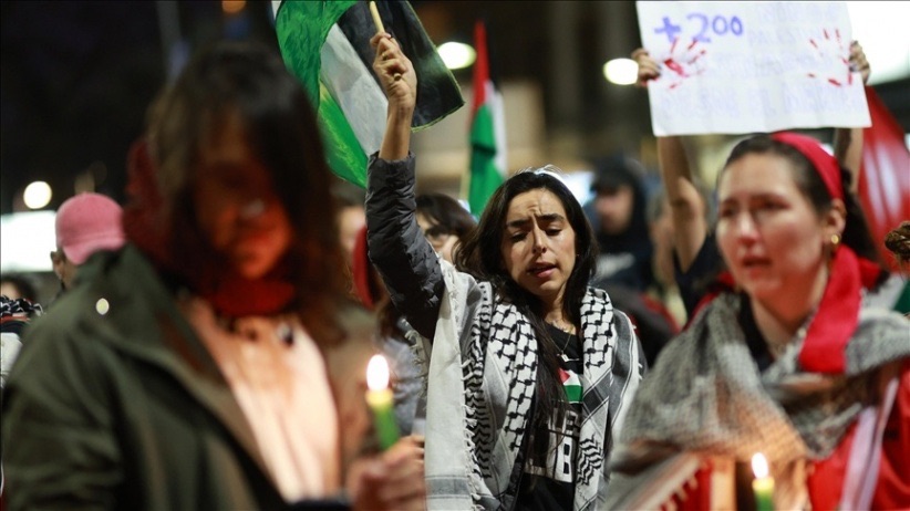 كما أشعل المحتجون الشموع ووضعوا الزهور للتعبير عن تضامنهم مع الشعب الفلسطيني.