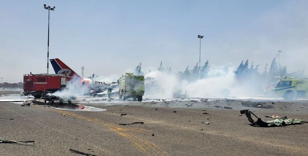 وقال مدير عام مطار صنعاء الدولي إنّ “العدو الصهيوني استهدف آخر طائرة من طائرات الخطوط الجوية اليمنية العاملة في مطار صنعاء ودمّرها”.