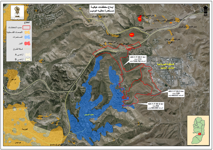 ثالثًا: المخطط الثالث الذي يحمل الرقم (غير مذكور في النص) ويهدف لبناء 1108 وحدات استيطانية جديدة على مساحة تقدر بـ486 دونمًا، ويتحد مع المخططين السابقين بهدف إحداث عملية تواصل جغرافي بين مستوطنتي “معاليه أدوميم” و”ميشور أدوميم”، المقامتين على أراضي المواطنين بين محافظتي القدس وأريحا والأغوار.