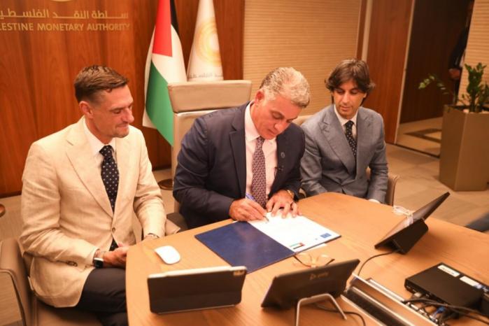 وقع محافظ سلطة النقد الفلسطينية معالي السيد يحيى شنار ونائب رئيس البنك الأوروبي للاستثمار السيد أمبروز فايول على اتفاقية قرض بقيمة 400 مليون يورو، وذلك على هامش اجتماعات الجمعية العامة للأمم المتحدة في نيويورك، بحضور مفوضة الاتحاد الأوروبي لشؤون البحر الابيض المتوسط، ومندوب فلسطين الدائم لدى الأمم المتحدة الدكتور رياض منصور، ويهدف القرض لدعم تعافي القطاع الخاص الفلسطيني وتعزيز قدرته على الصمود في ظل الظروف الاقتصادية الصعبة. وتأتي هذه الاتفاقية في إطار شراكة استراتيجية بين سلطة النقد والبنك الأوروبي للاستثمار والوسطاء الماليين، لتوجيه التمويل إلى القطاع الخاص