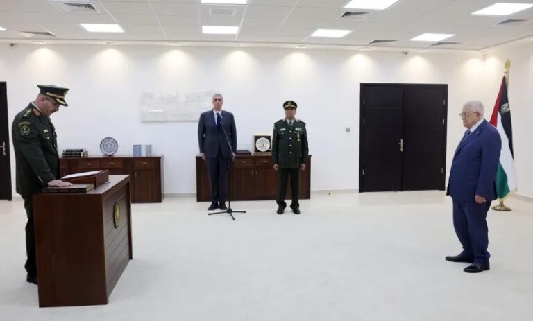 أدى العميد خالد محمد أحمد سبيتان، اليمين القانونية، أمام رئيس دولة فلسطين محمود عباس، نائباً عاماً عسكرياً.