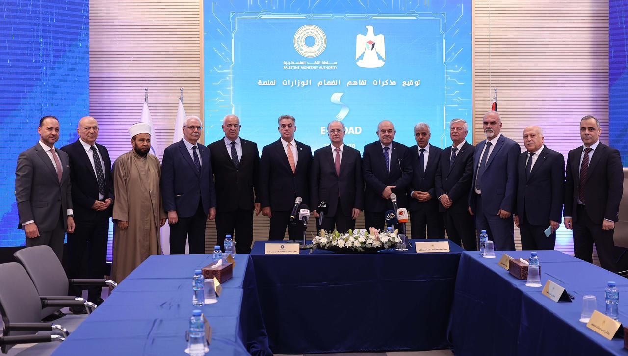 وجاء ذلك خلال حفل توقيع الاتفاقيات بحضور رئيس الوزراء محمد مصطفى، ومحافظ سلطة النقد يحيى شنار، والوزراء والوكلاء والفرق الفنية التي عملت لإتمام عمليات الربط.