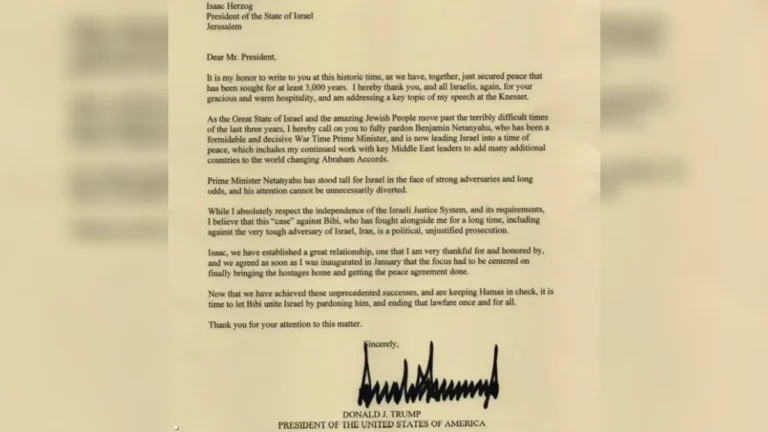 وجاء في رسالة ترامب أن “العفو عن نتنياهو سيكون خطوة مهمة لتوحيد إسرائيل بعد سنوات صعبة”. وأكد ترامب في الرسالة أن نتنياهو “دافع بثبات عن إسرائيل في مواجهة خصوم أقوياء، وأن القضية المرفوعة ضده سياسية وغير مبررة”.