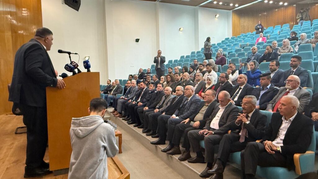 وفي كلمته شكر الأستاذ الدكتور عبد الناصر زيد، رئيس الجامعة عطوفة محافظ نابلس والحضور جميعا على حضورهم ومشاركتهم للجامعة في الاحتفاء بإنجازاتها والذي تميز هذا العام على المستوى الإقليمي والدولي وكونها الوحيدة عربياً التي تنال جائزتين، والتي تمثلت بالحصول على جائزتين مرموقتين ضمن جوائز مؤسسة التايمز العالميّة للعالم العربي للعام 2025، وهما جائزة الدعم المتميّز للطلبة عن مبادرة TESI التي أطلقتها الجامعة بالشراكة مع اتحاد الجامعات المتوسطيّة (UNIMED) كنموذج دعم شامل للطلبة استجابةً لأزمة التعليم العالي في غزة، والتي أصبحت مبادرة تعليميّة يتم استخدامها في مناطق الكوارث الطبيعيّة والصراعات والحروب، وجائزة الدعم المتميّز للقيادة البيئيّة عن مشروع (PALGAP) الذي قدم نموذجًا رياديًا يجمع بين البحث العلمي والتعليم وخدمة المجتمع وصنع السياسات، لمعالجة التحديات الزراعية والبيئية في فلسطين، ولا يخفى على أحد أثر ذلك على التغيّر المناخي وخطورته وما نشعر به من جفاف في فلسطين، والذي لم يسبق له مثيل.