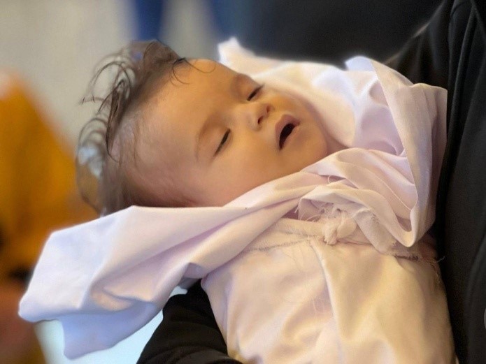 وتوفيت الطفلة الرضيعة رهف أحمد ناجي ابو جزر داخل احد مخيمات النزوح في مواصي خان يونس التي نزحت الها العائلة من رفح جنوب القطاع.
