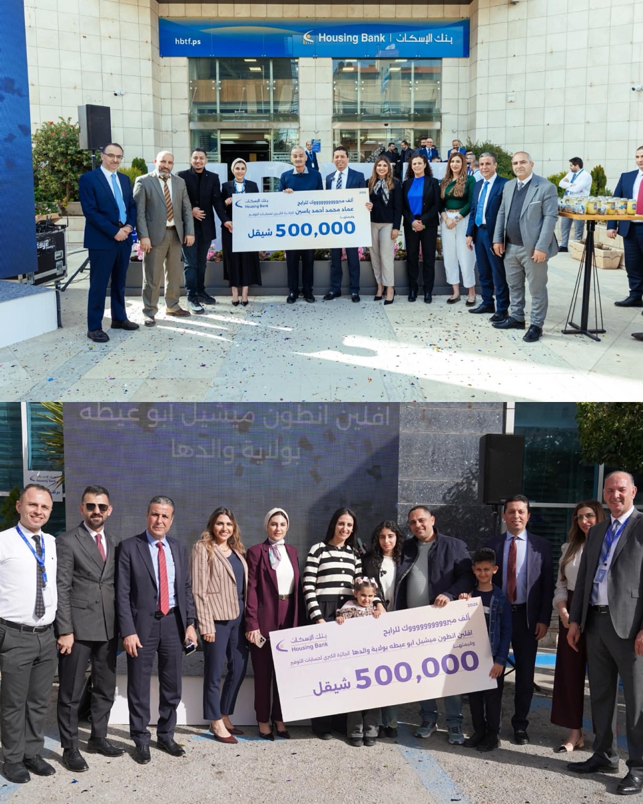 انطلاقا من سياسة البنك الهادفة لتعزيز ثقافة الادخار لدى عملائه ومكافأتهم على ولائهم وثقتهم، أعلن بنك الإسكان عن الفائزين بالجائزة الكبرى لحملة حسابات التوفير للعام 2025تحت شعار “نص مليون فكر فيها من اليوم” والتي تبلغ قيمتهامليون شيقل موزعة على رابحين اثنين وربحها كل من عماد محمد امين ياسين من فرع رام الله وافلين انطون ميشيل أبو عيطة بولاية والدها من فرع بيت لحم.