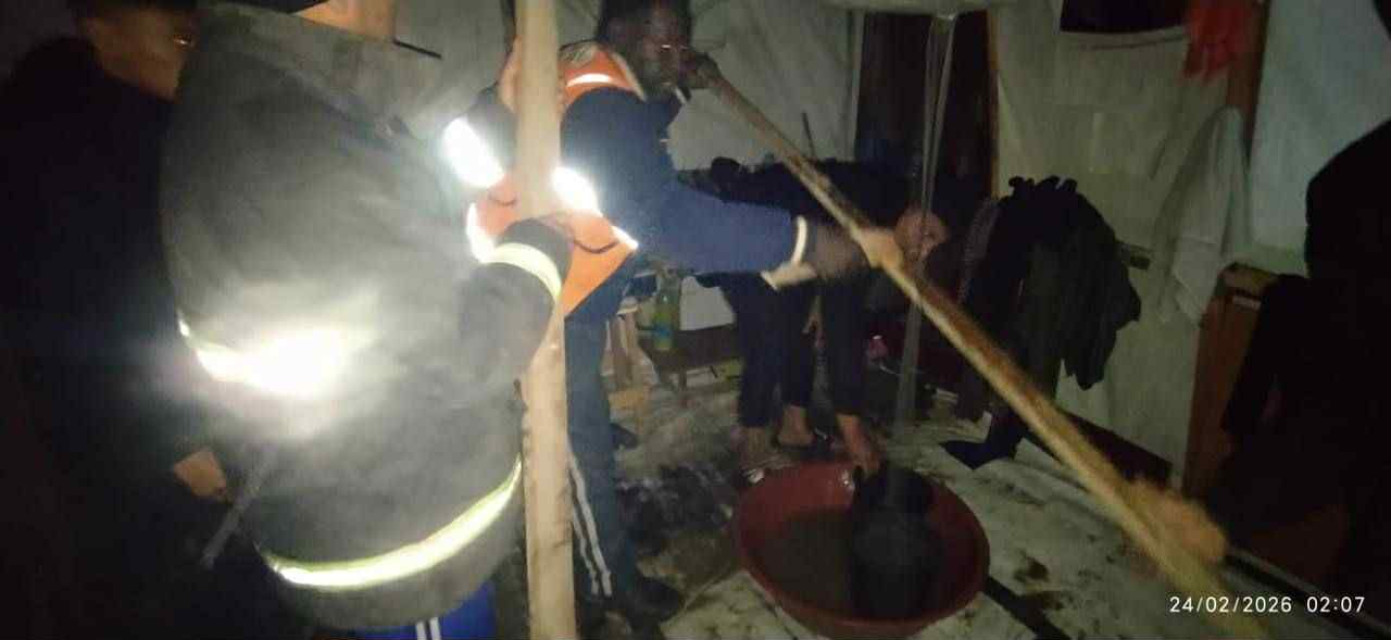 واعلن الدفاع المدني انه تلقى عدة نداءات استغاثة حول غرق خيام للنازحين الليلة بفعل شدة الأمطار.