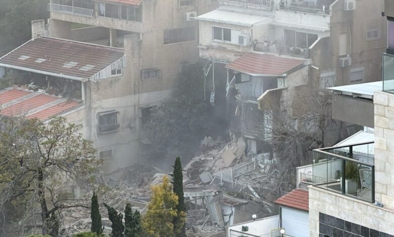 أُصيب 8 أشخاص في استهداف مبنى سكني من عدّة طوابق في حيفا بصاروخ إيراني، يحمل رأسًا يزن 450 كيلو غراما، ووصفت جراح أحدهم بالخطيرة، فيما أشارت طواقم الإنقاذ لاحتمال وجود عالقين، ودوت صافرات الإنذار شمالي وجنوبّ البلاد، إثر إطلاق صواريخ من إيران.
